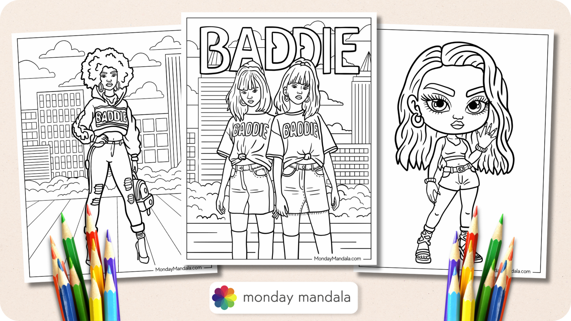 Bold style, aesthetic outfits, and confident poses shine in these 20 Baddie coloring pages, free to download and print! Perfect for fans of TikTok-inspired fashion and digital beauty culture, these pages highlight everything from glam makeup and long lashes to luxe nails.