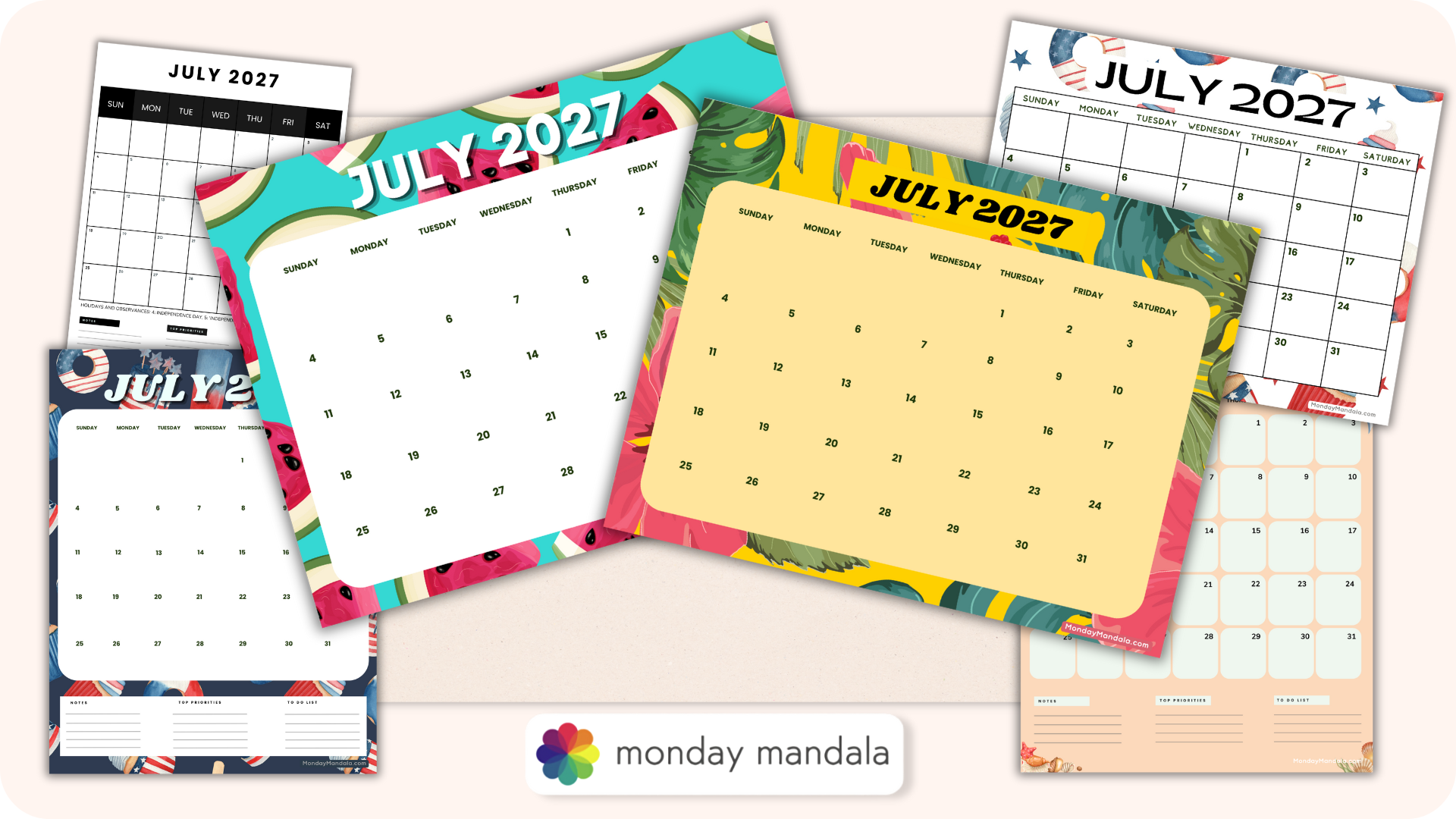 On this page, you will find 52 unique July 2027 calendars that are all free to download and print! Without a doubt, July is one of my favorite months of the year as it ushers in summer break, warmer weather, BBQs, and who could forget the 4th of July celebrations!