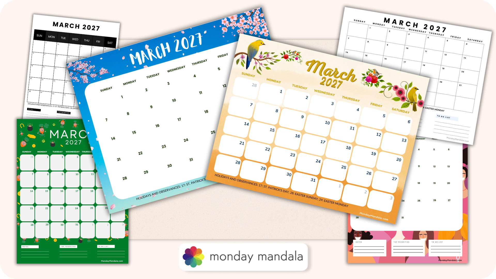 March is, without a doubt, one of my favorite months of the year. It ushers in new life and colors with the beginning of spring and, who could forget, St Patrick’s Day! So, if you are looking to keep on top of your appointments and special dates, then these printable March 2027 calendars are just for you!